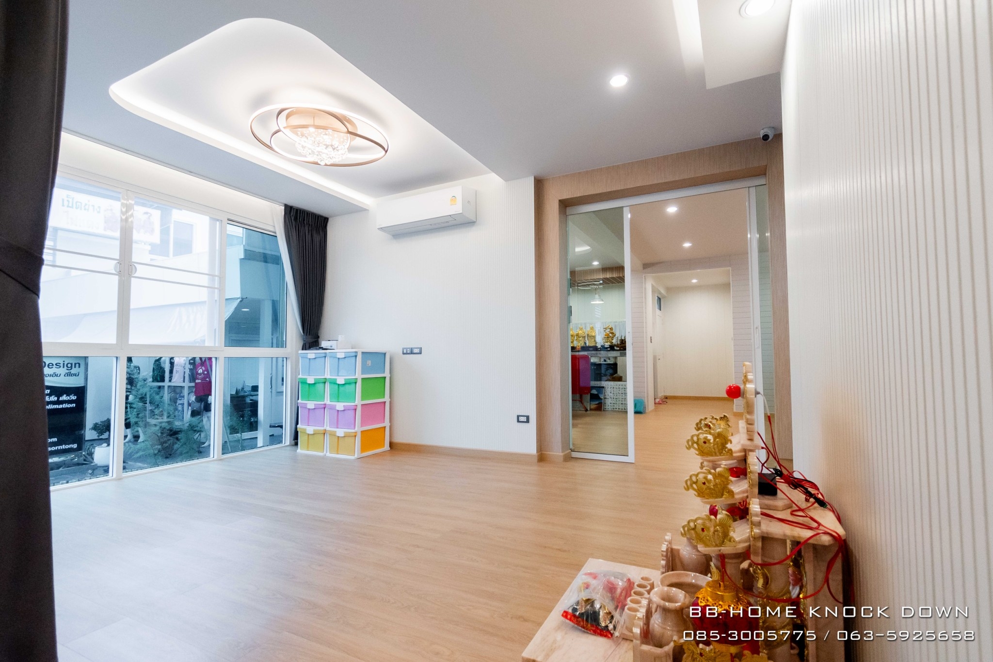 • 3 bedrooms, 2 bathrooms, 1 living room, 1 kitchen, 1 dining table area. 1 multi-purpose room 1 relaxation area, 1 Buddha room, 1 music practice room 1 washing area, 1 storage room with balcony