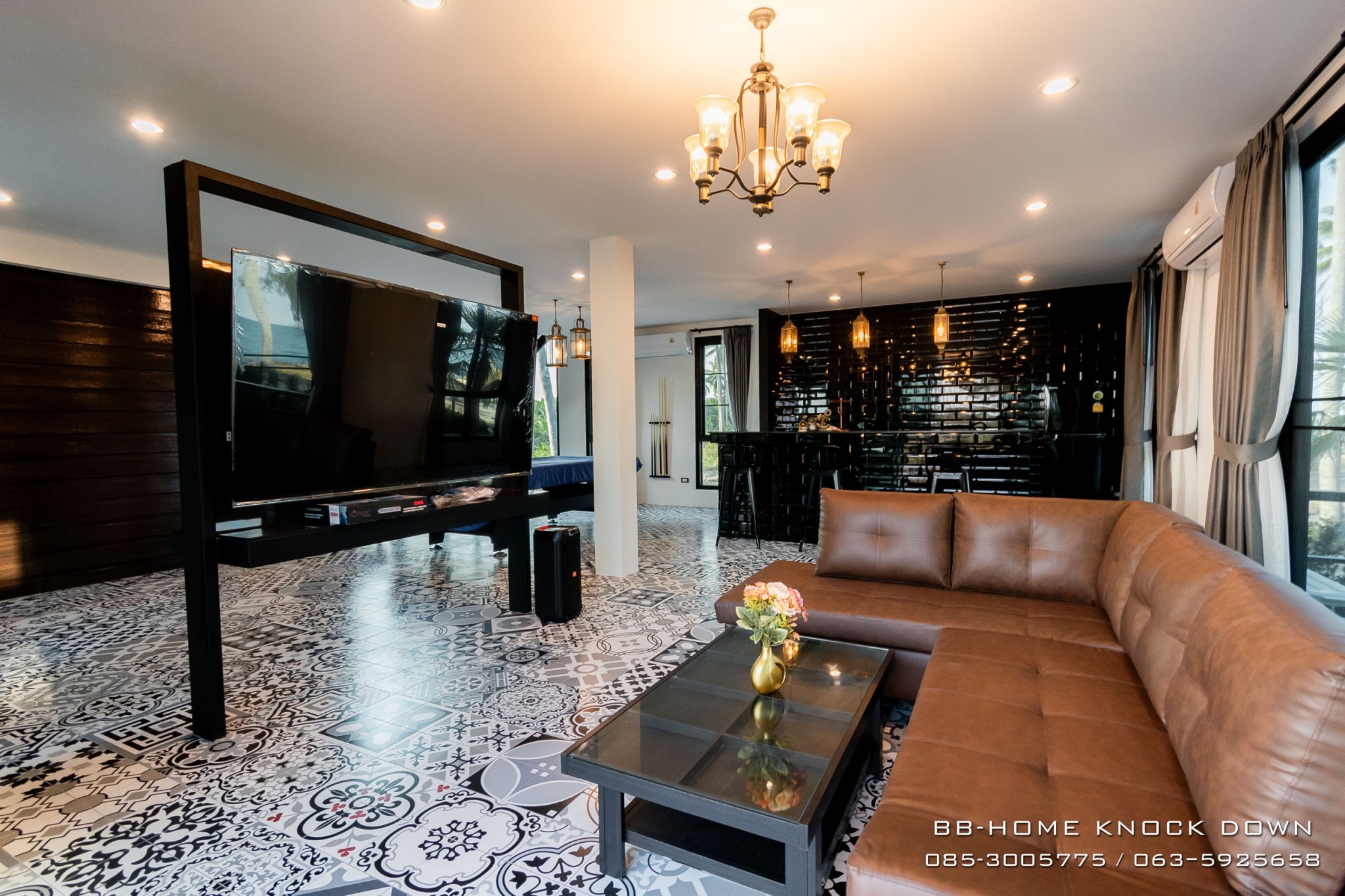 • 3 bedrooms, 3 bathrooms, 1 living room, 1 kitchen, 1 bar counter area. 2 multipurpose areas with balconies