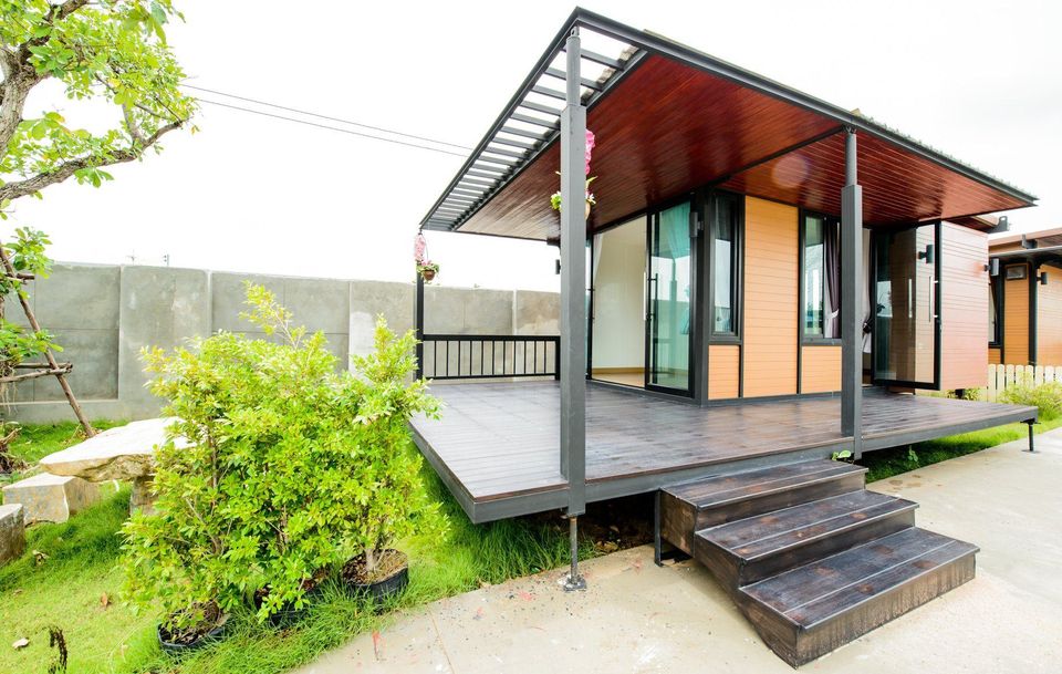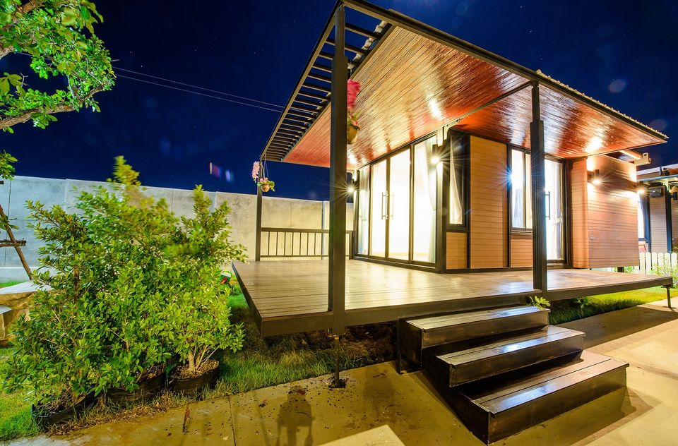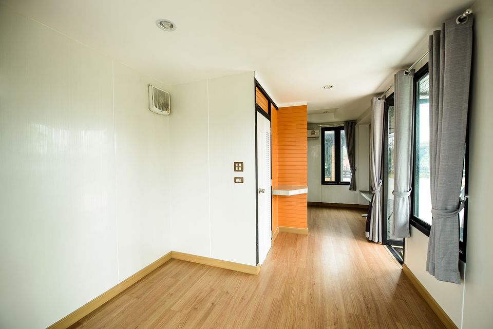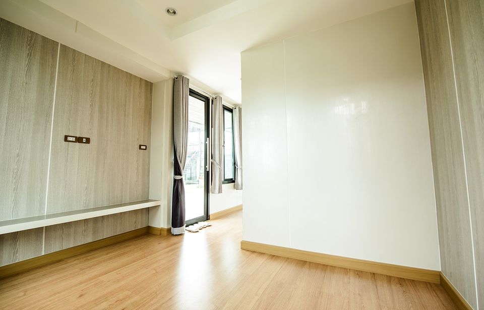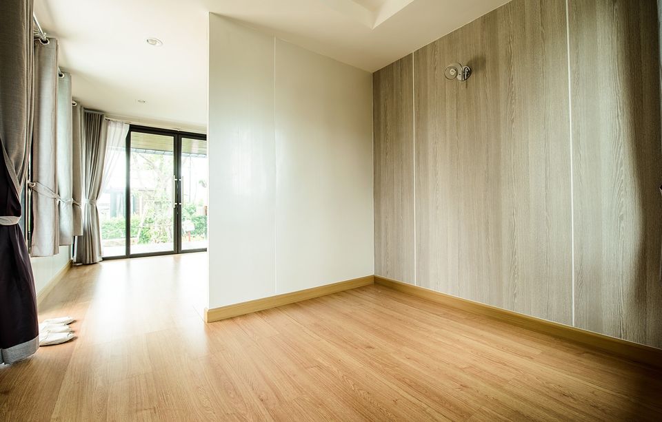 • Interior wall with laminate patterned / decorative wood / tiles.