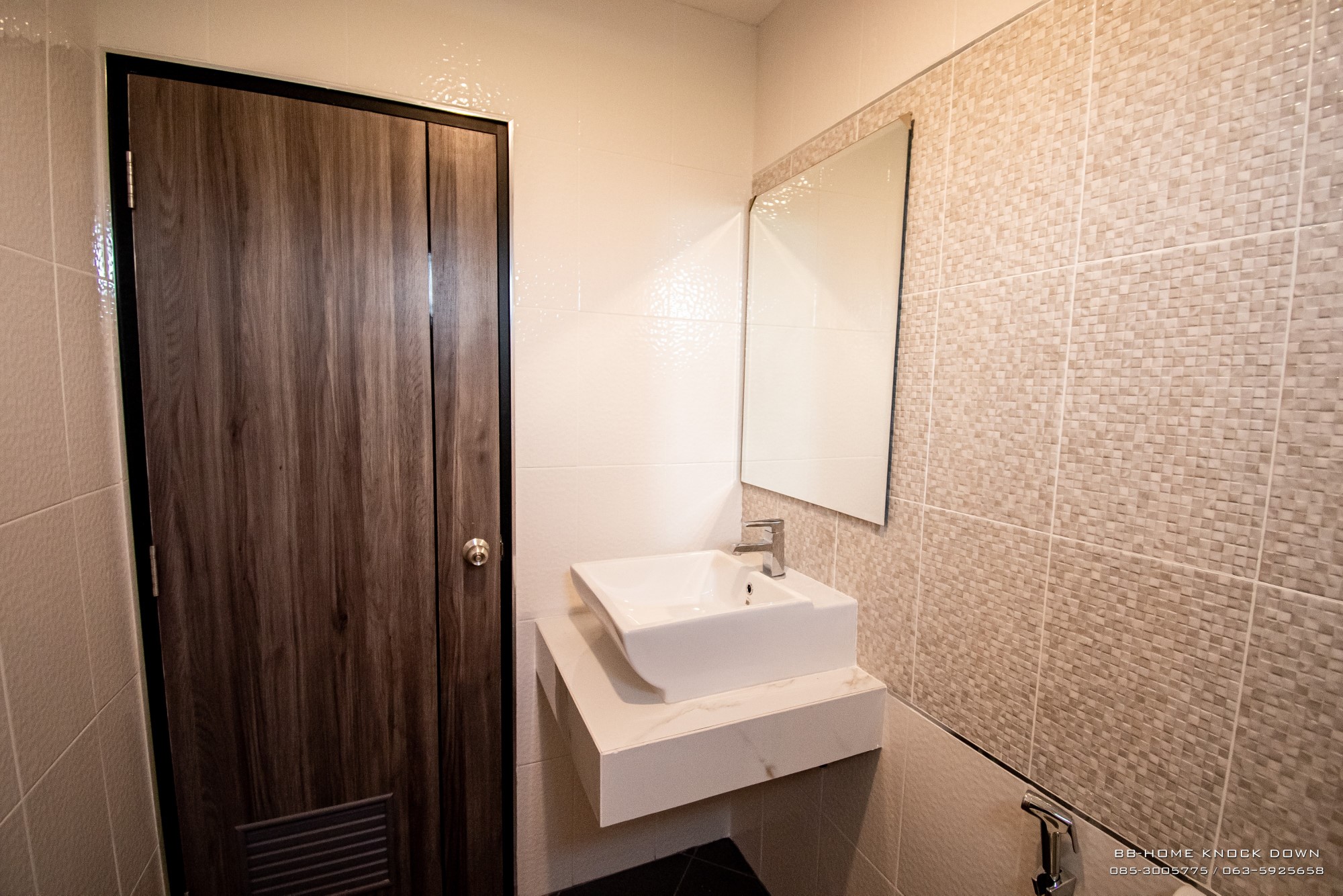 • Interior wall with laminate patterned / decorative wood / tiles.