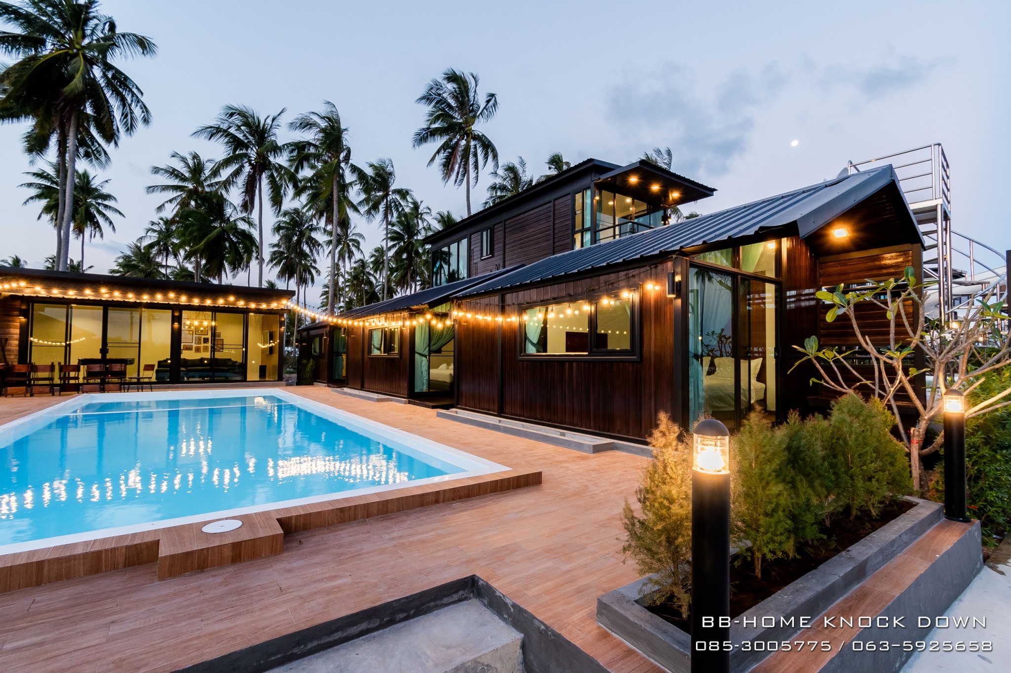 TSP97 บ้านพักตากอากาศน็อคดาวน์โครงเหล็กรีสอร์ท พูลวิลล่า