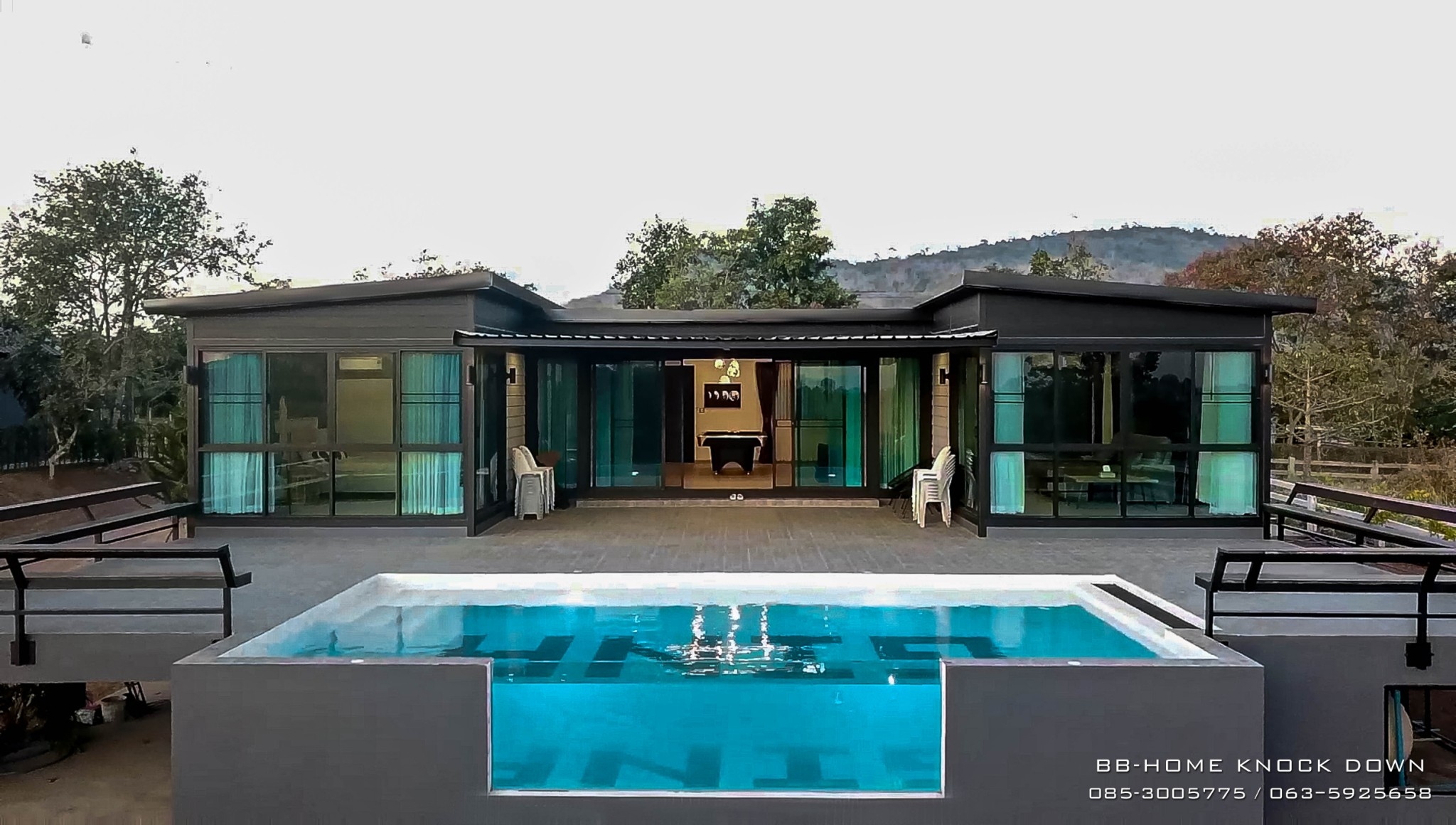 TSP106 บ้านพักตากอากาศน็อคดาวน์โครงเหล็กพูลวิลล่า