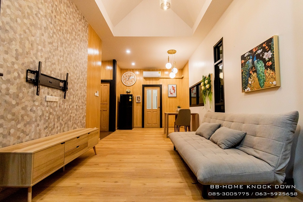 • Interior wall with laminate patterned / decorative wood / tiles.