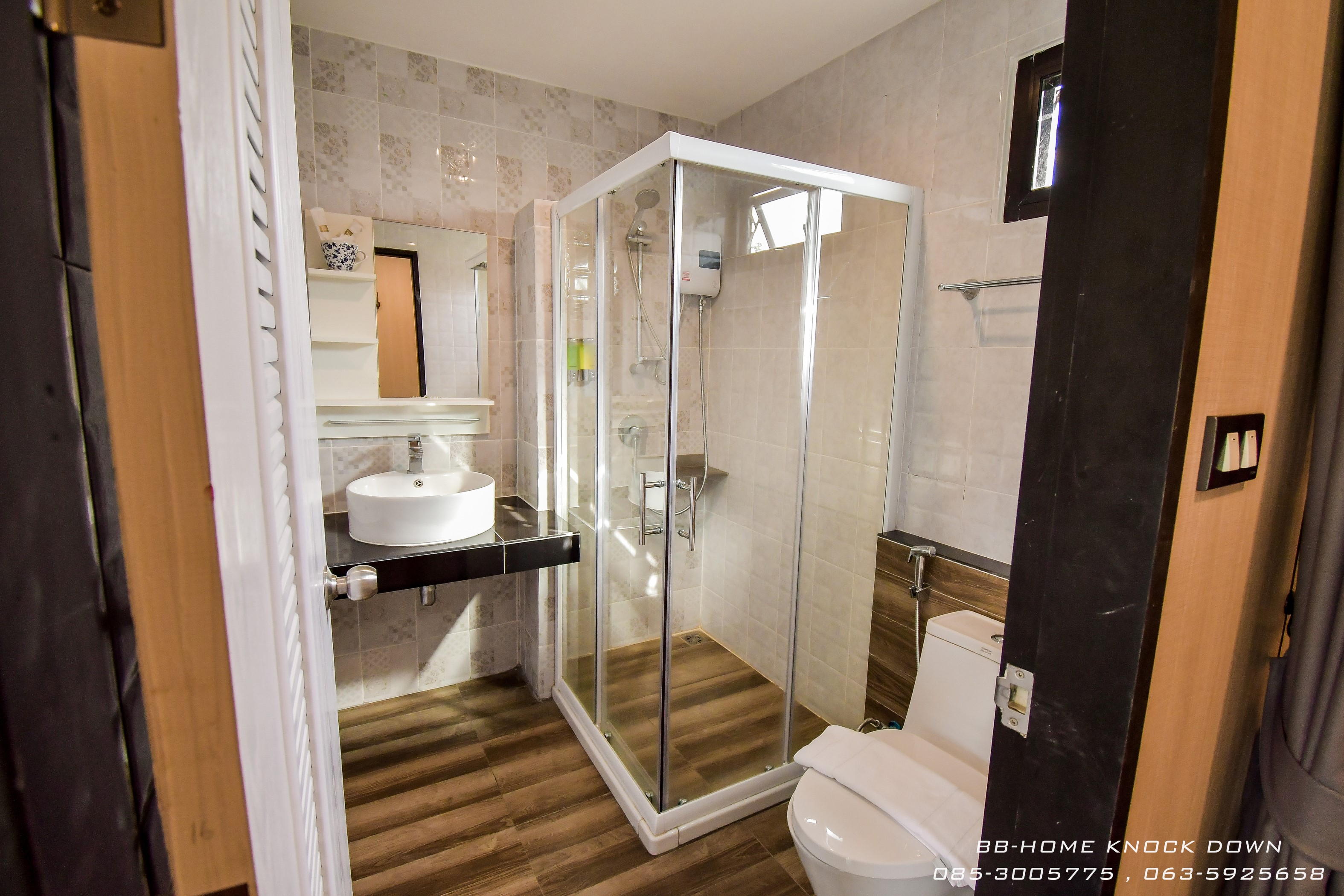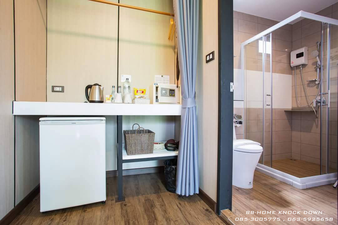 • Interior wall with laminate patterned / decorative wood / tiles.