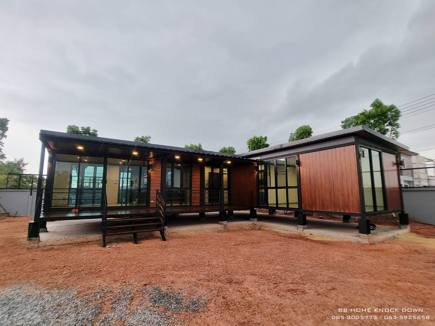 L-Shaped knock down house. It is coming with a classic design by the steel structure and the house is designed to be elevated. The function in the house is completely convenient for your living. In front of the house also has a wide balcony for relax and your purpose activities. (คำบรรยาย)