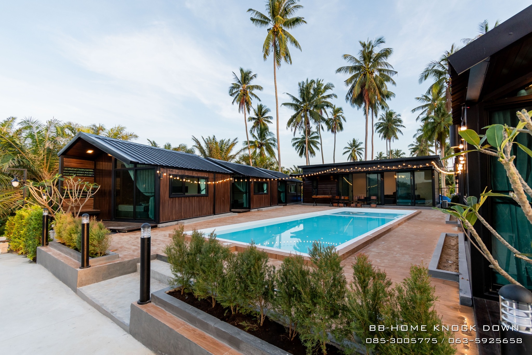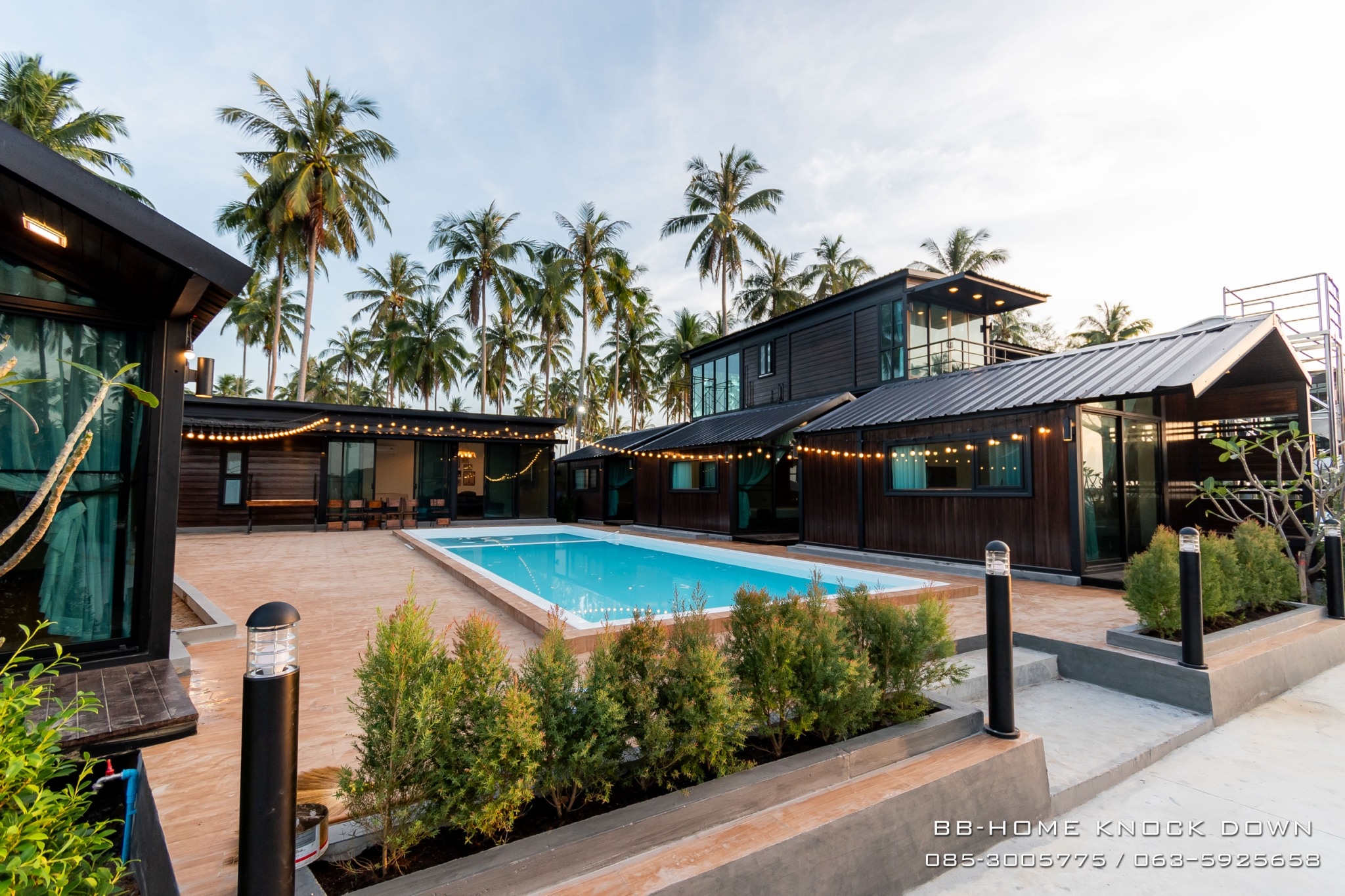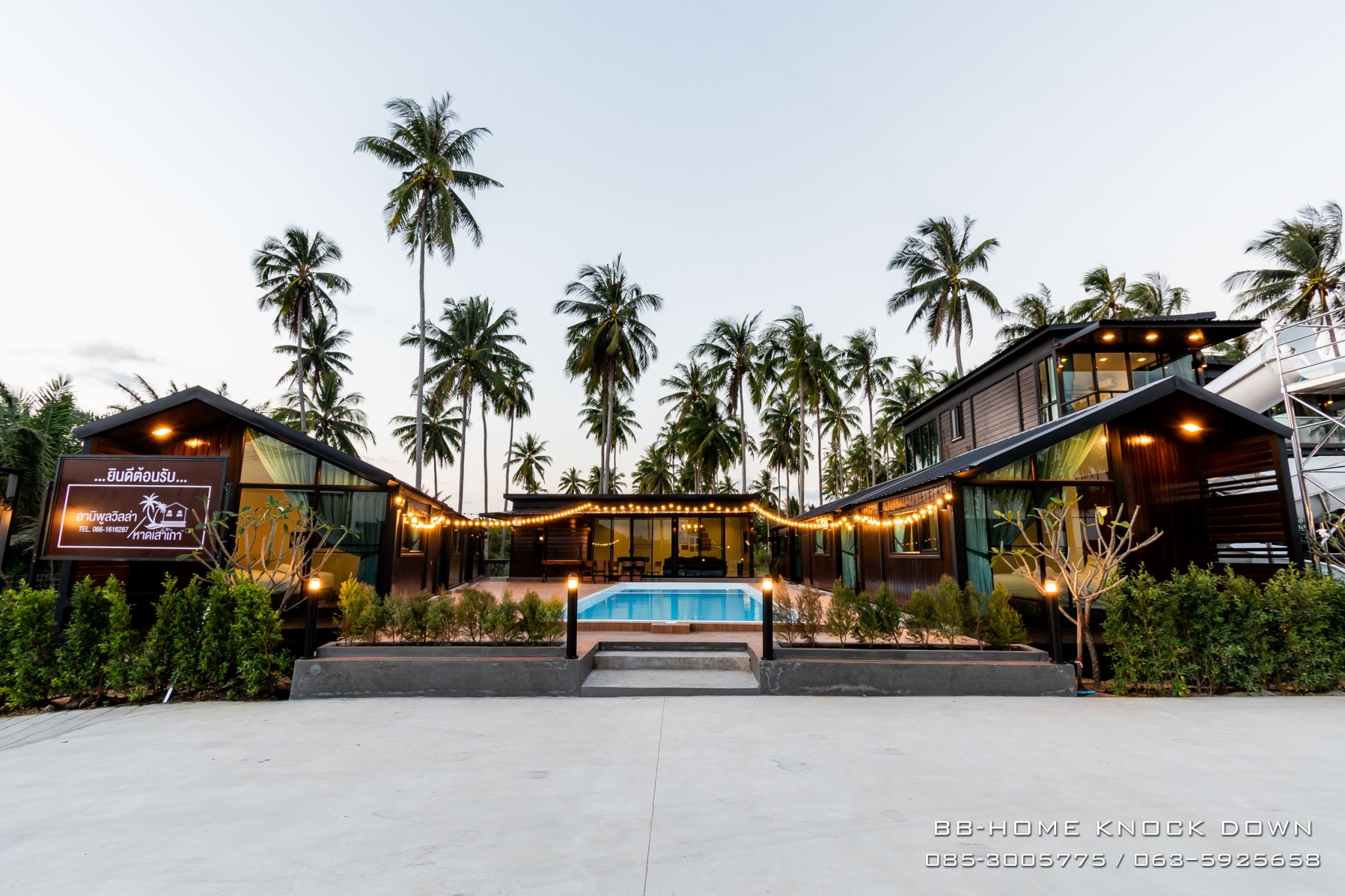 TSP97 บ้านพักตากอากาศน็อคดาวน์โครงเหล็กรีสอร์ท พูลวิลล่า
