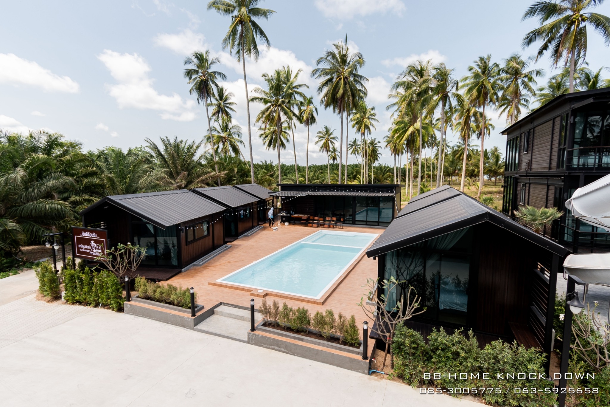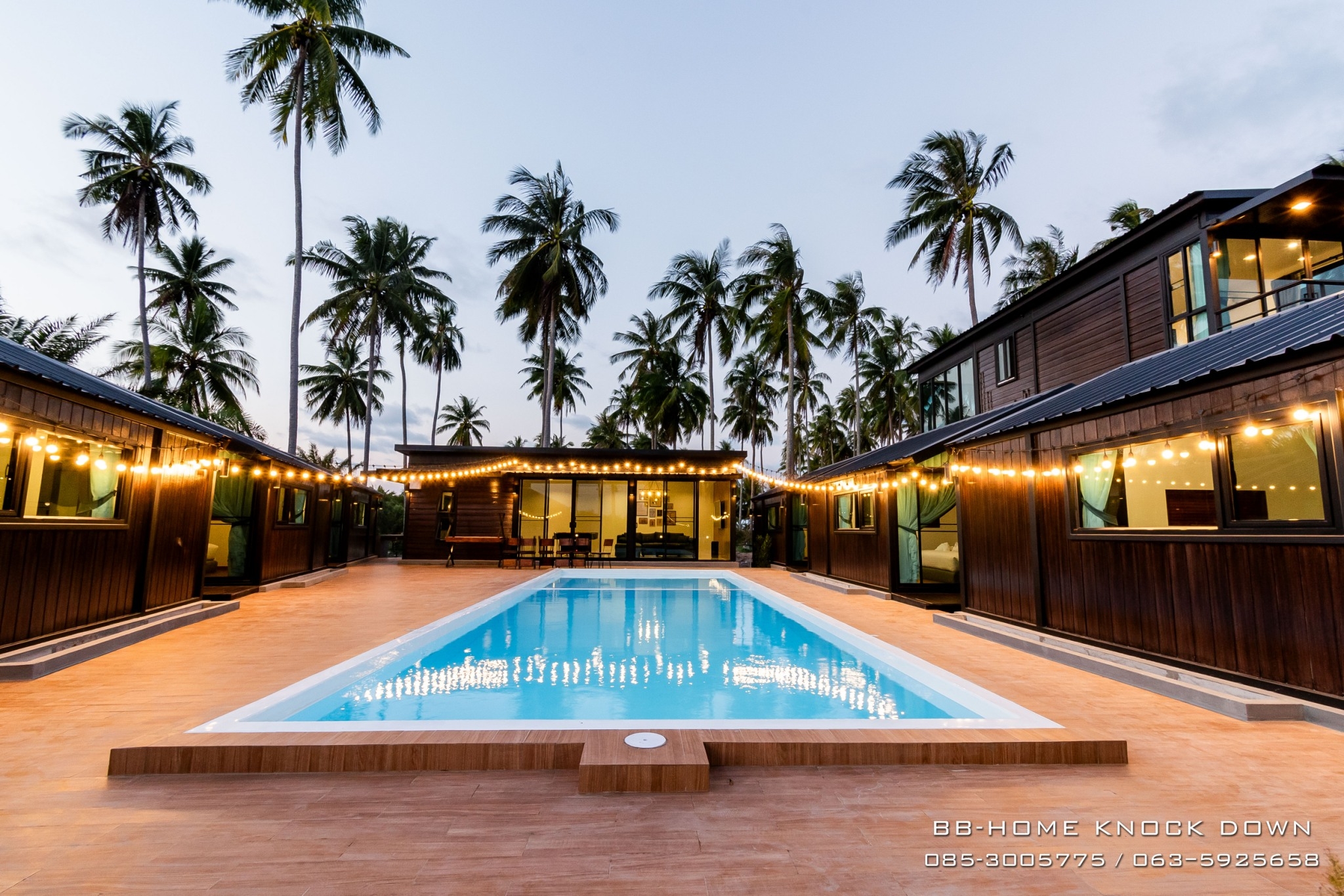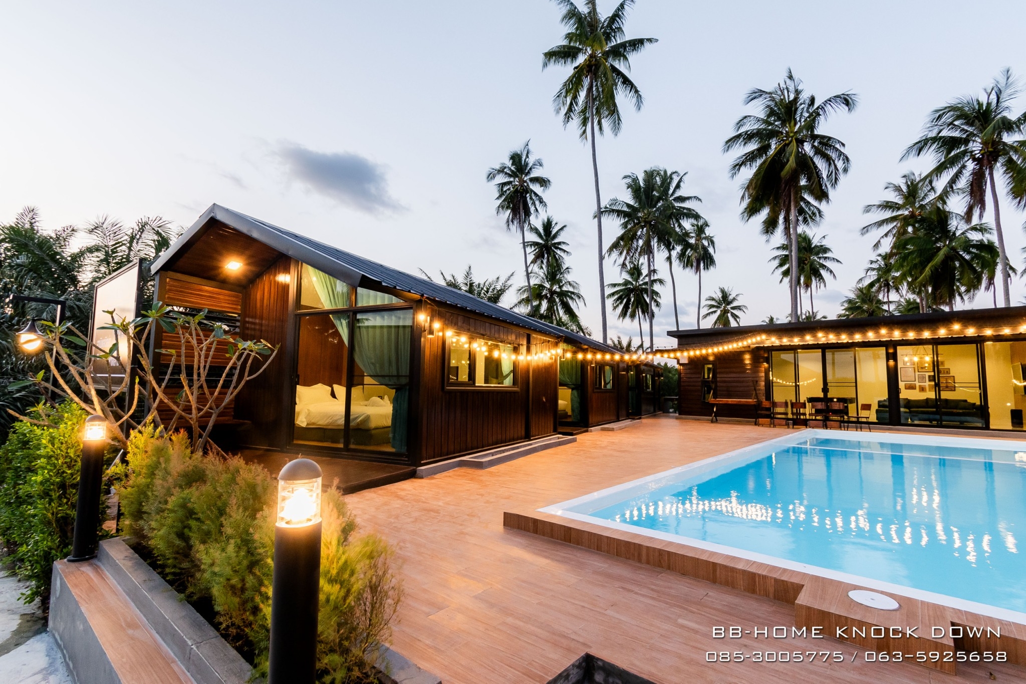 TSP97 บ้านพักตากอากาศน็อคดาวน์โครงเหล็กรีสอร์ท พูลวิลล่า